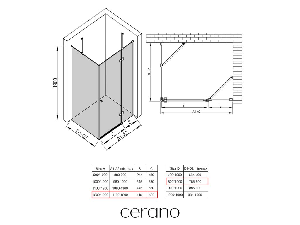 V rámci této série nabízíme širokou škálu rozměrů, abychom uspokojili různé potřeby našich zákazníků. Všechny sprchové kouty, dveře a zástěny značky CERANO jsou plně kompatibilní se sprchovými vaničkami CERANO ve stejných rozměrech, což zajišťuje bezproblémovou instalaci a dokonalé sladění. Sprchový kout lze navíc instalovat flexibilně – buď na odpovídající sprchovou vaničku, nebo přímo na podlahu podle vašich preferencí a možností koupelny.