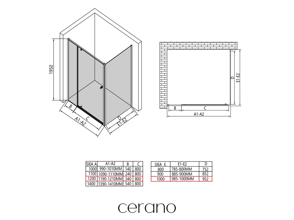 V rámci této série nabízíme širokou škálu rozměrů, abychom uspokojili různé potřeby našich zákazníků. Všechny sprchové kouty, dveře a zástěny značky CERANO jsou plně kompatibilní se sprchovými vaničkami CERANO ve stejných rozměrech, což zajišťuje bezproblémovou instalaci a dokonalé sladění. Sprchový kout lze navíc instalovat flexibilně – buď na odpovídající sprchovou vaničku, nebo přímo na podlahu podle vašich preferencí a možností koupelny.