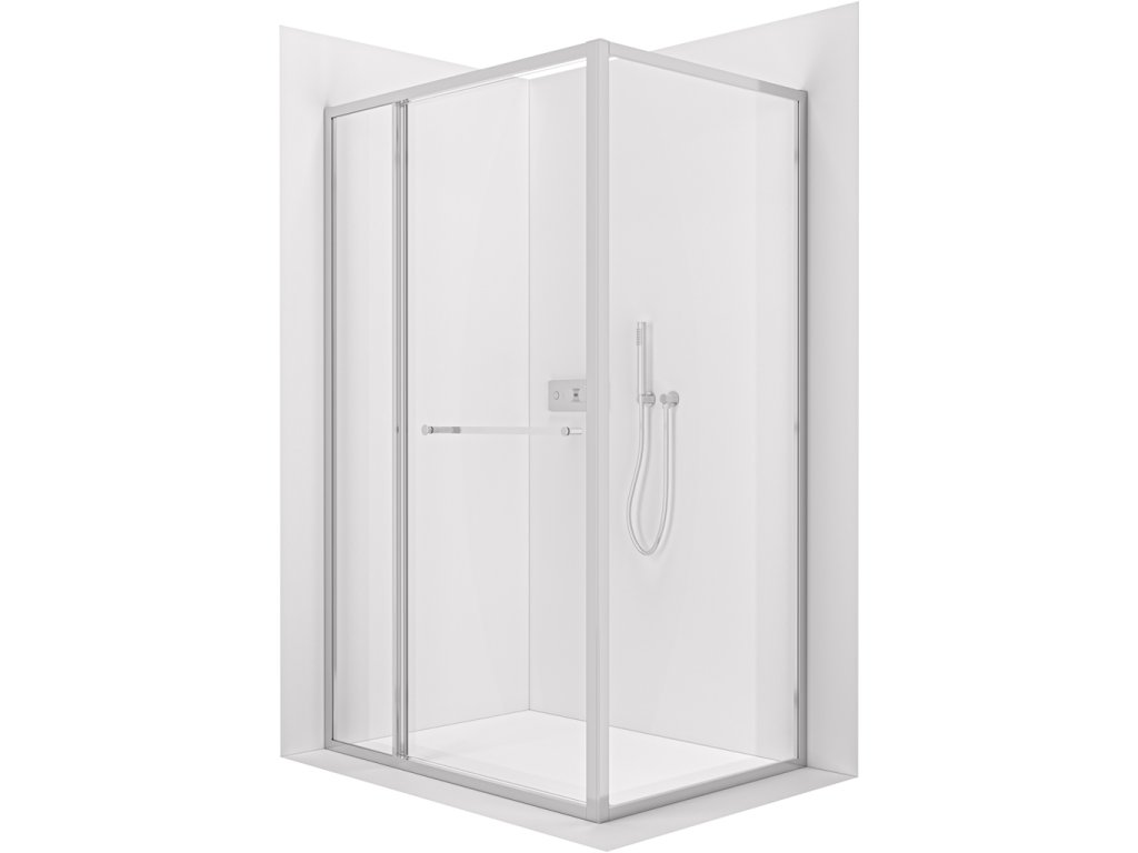 Zasouvací dveře se inovativním způsobem zasouvají dovnitř sprchového koutu, čímž vzniká velký vstupní prostor. Díky tomu dveře nezasahují do prostoru koupelny. Jde o velmi vhodné řešení i pro malé koupelny.