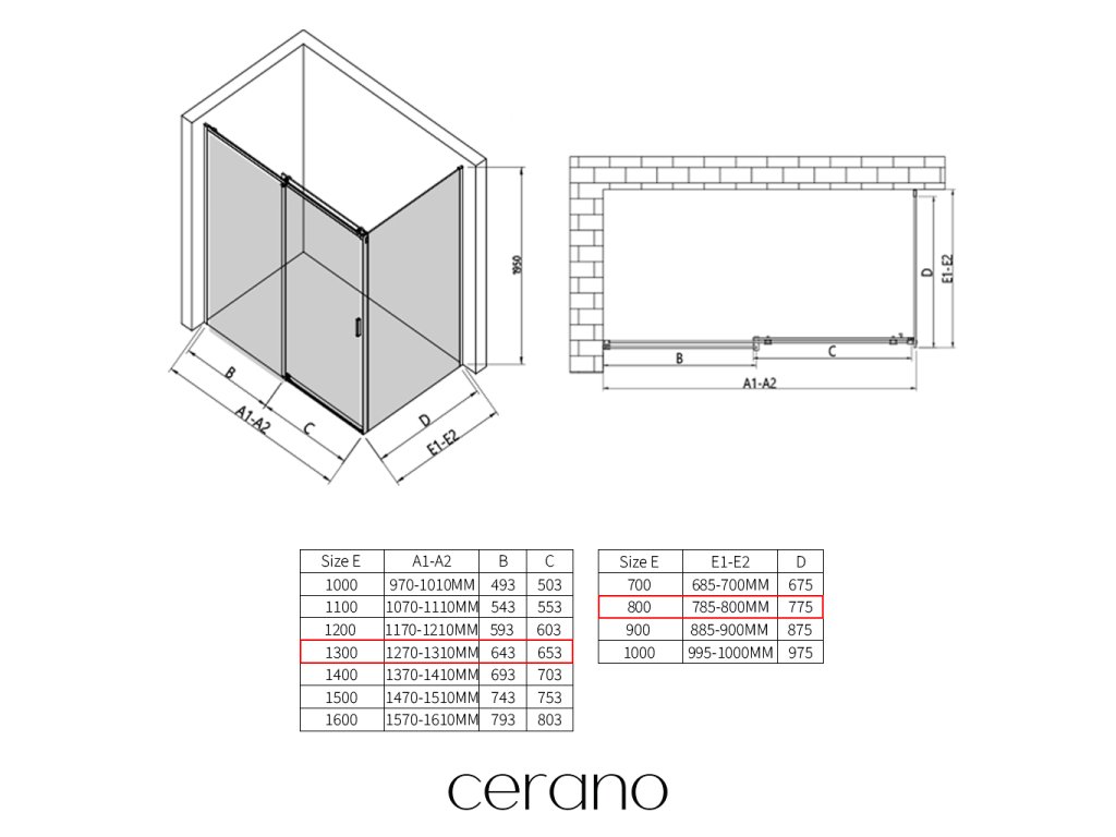 V rámci této série nabízíme širokou škálu rozměrů, abychom uspokojili různé potřeby našich zákazníků. Všechny sprchové kouty, dveře a zástěny značky CERANO jsou plně kompatibilní se sprchovými vaničkami CERANO ve stejných rozměrech, což zajišťuje bezproblémovou instalaci a dokonalé sladění. Sprchový kout lze navíc instalovat flexibilně – buď na odpovídající sprchovou vaničku, nebo přímo na podlahu podle vašich preferencí a možností koupelny.