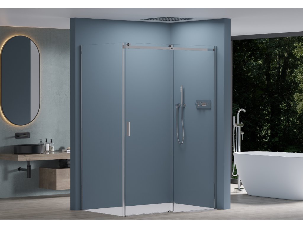 Díky nastavitelnému stěnovému profilu s rozsahem až 40 mm snadno přizpůsobíte sprchové dveře i v případě menších nerovností stěn nebo odchylek ve stavebním otvoru. Tento chytrý systém usnadňuje instalaci a zajišťuje dokonalé dosednutí dveří. Možnost nastavení platí pouze pro dveře – pevná zástěna se montuje v pevném rozměru.
