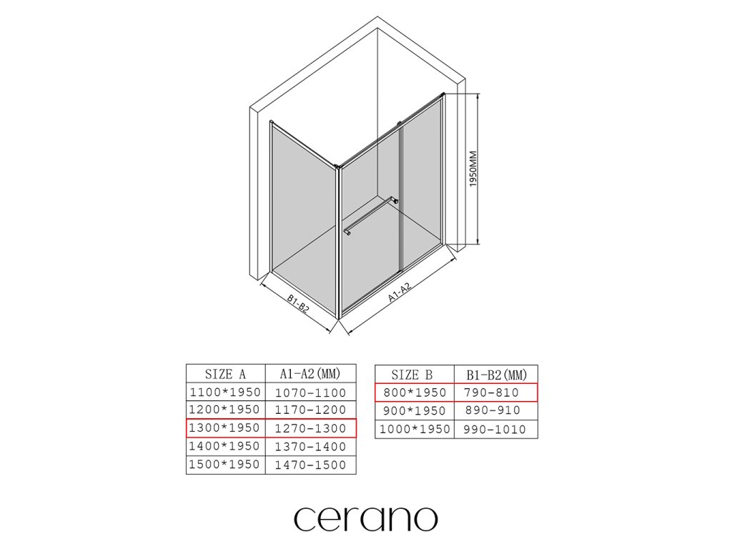 V rámci této série nabízíme širokou škálu rozměrů, abychom uspokojili různé potřeby našich zákazníků. Všechny sprchové kouty, dveře a zástěny značky CERANO jsou plně kompatibilní se sprchovými vaničkami CERANO ve stejných rozměrech, což zajišťuje bezproblémovou instalaci a dokonalé sladění. Sprchový kout lze navíc instalovat flexibilně – buď na odpovídající sprchovou vaničku, nebo přímo na podlahu podle vašich preferencí a možností koupelny.
