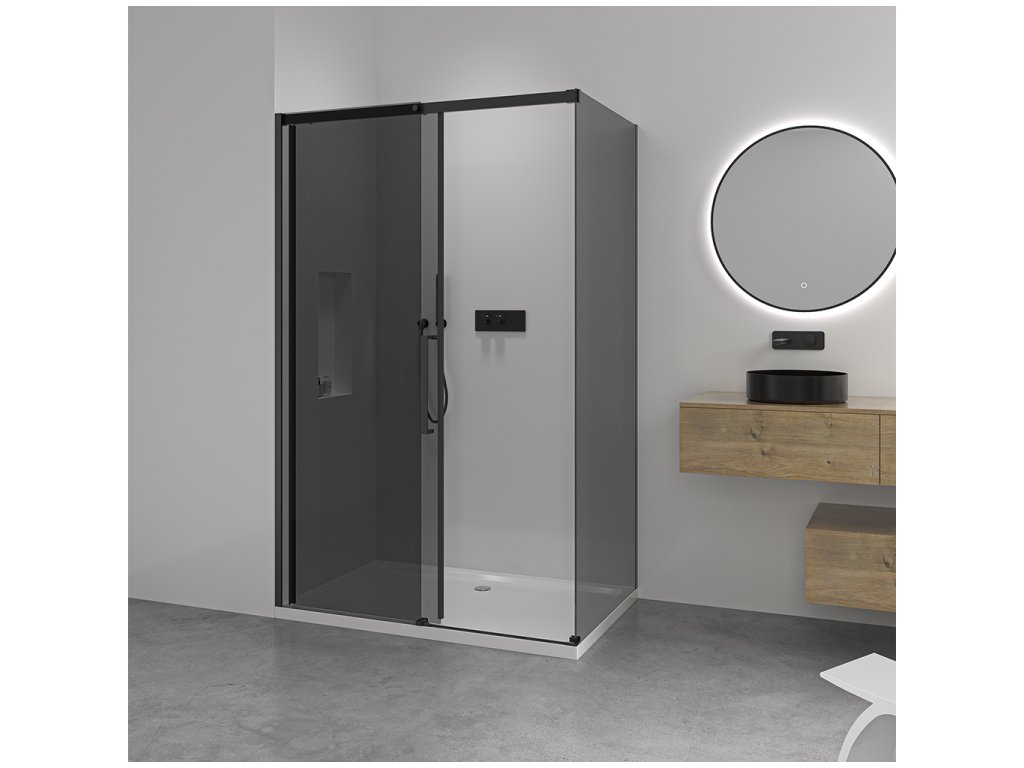 CERANO - Sprchový kout Lantono L/P - 8 mm - Soft-Close - černá matná, grafitové sklo - 140x100x195 cm - posuvný