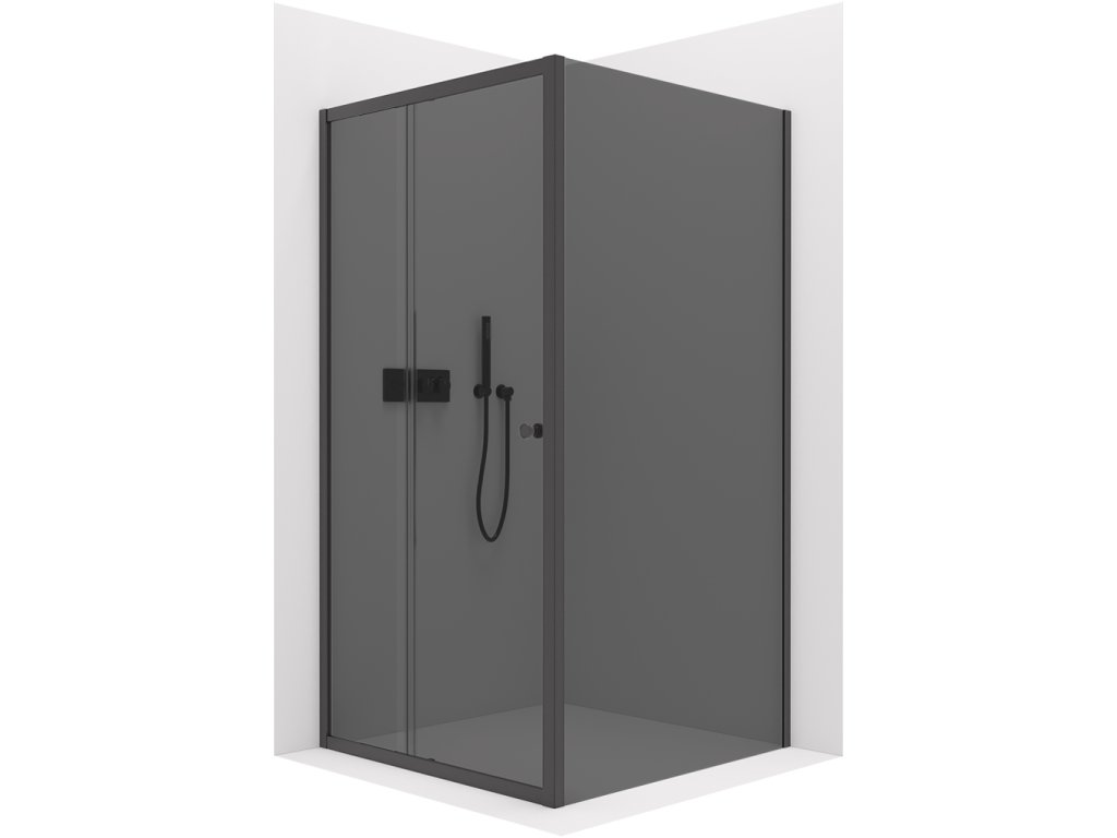 CERANO - Sprchový kout Varone POINT L/P - 6 mm - černá matná, grafitové sklo - 140x70x195 cm - posuvný