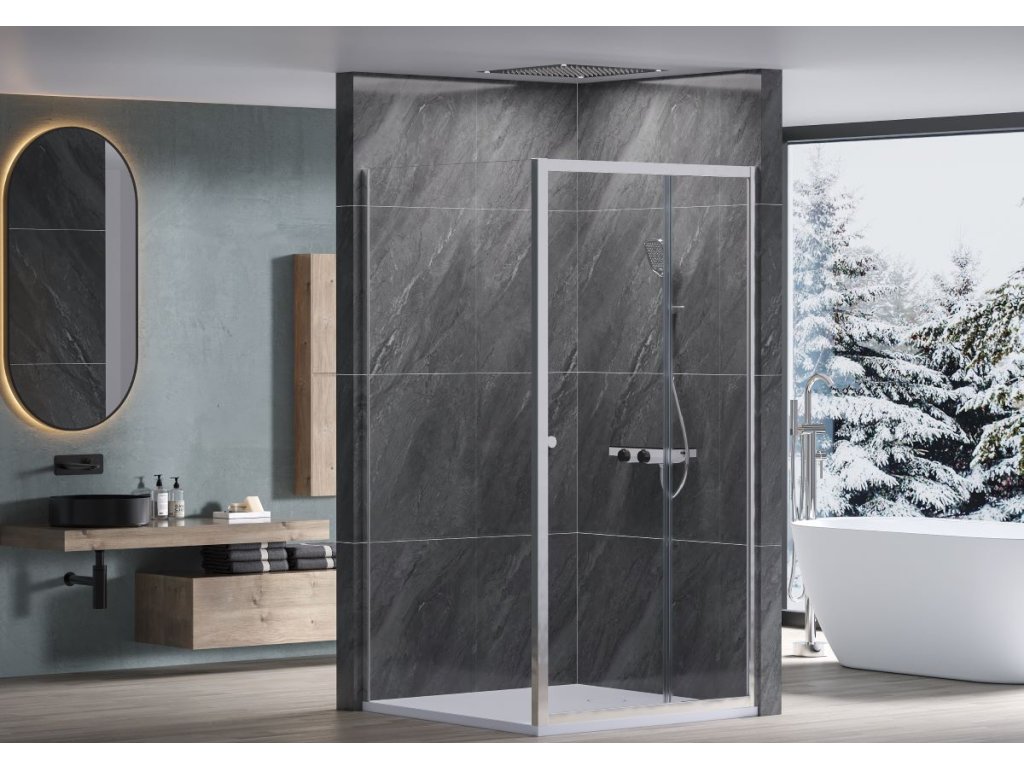Díky nastavitelnému stěnovému profilu s rozsahem až 40 mm snadno přizpůsobíte sprchové dveře i v případě menších nerovností stěn nebo odchylek ve stavebním otvoru. Tento chytrý systém usnadňuje instalaci a zajišťuje dokonalé dosednutí dveří. Možnost nastavení platí pouze pro dveře – pevná zástěna se montuje v pevném rozměru.