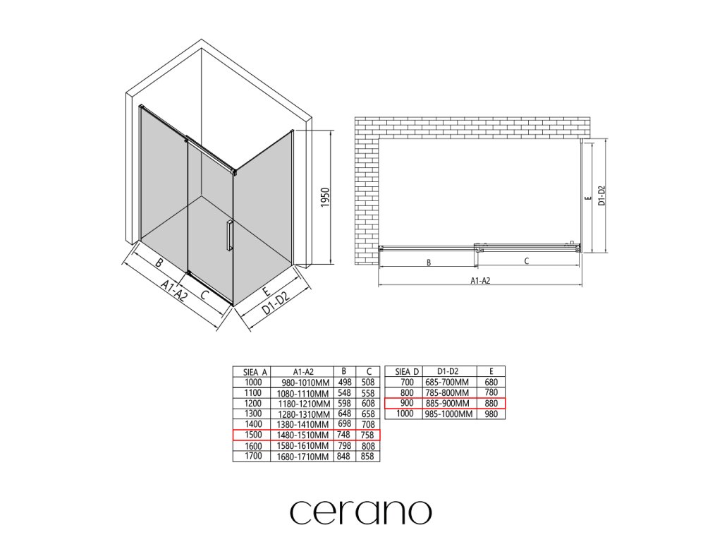 V rámci této série nabízíme širokou škálu rozměrů, abychom uspokojili různé potřeby našich zákazníků. Všechny sprchové kouty, dveře a zástěny značky CERANO jsou plně kompatibilní se sprchovými vaničkami CERANO ve stejných rozměrech, což zajišťuje bezproblémovou instalaci a dokonalé sladění. Sprchový kout lze navíc instalovat flexibilně – buď na odpovídající sprchovou vaničku, nebo přímo na podlahu podle vašich preferencí a možností koupelny.