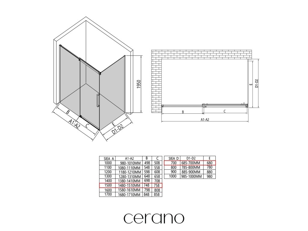 V rámci této série nabízíme širokou škálu rozměrů, abychom uspokojili různé potřeby našich zákazníků. Všechny sprchové kouty, dveře a zástěny značky CERANO jsou plně kompatibilní se sprchovými vaničkami CERANO ve stejných rozměrech, což zajišťuje bezproblémovou instalaci a dokonalé sladění. Sprchový kout lze navíc instalovat flexibilně – buď na odpovídající sprchovou vaničku, nebo přímo na podlahu podle vašich preferencí a možností koupelny.