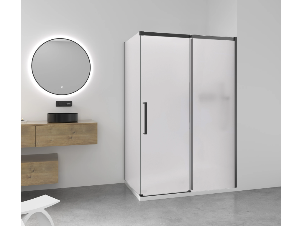 CERANO - Sprchový kout Lantono - pravá - 8 mm - Soft-Close - černá matná, mléčné sklo - 150x80 cm - posuvný