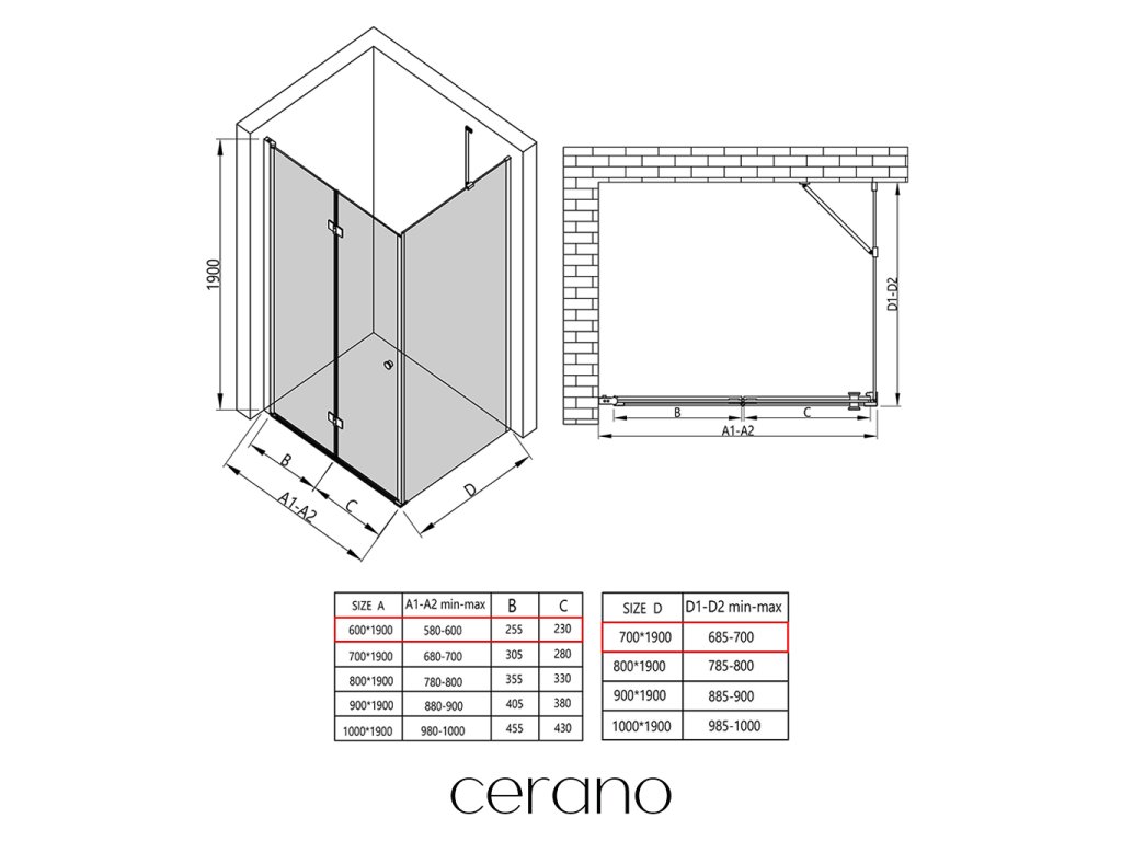 V rámci této série nabízíme širokou škálu rozměrů, abychom uspokojili různé potřeby našich zákazníků. Všechny sprchové kouty, dveře a zástěny značky Cerano jsou plně kompatibilní se sprchovými vaničkami Cerano ve stejných rozměrech, což zajišťuje bezproblémovou instalaci a dokonalé sladění. Sprchový kout lze navíc instalovat flexibilně – buď na odpovídající sprchovou vaničku, nebo přímo na podlahu podle vašich preferencí a možností koupelny.