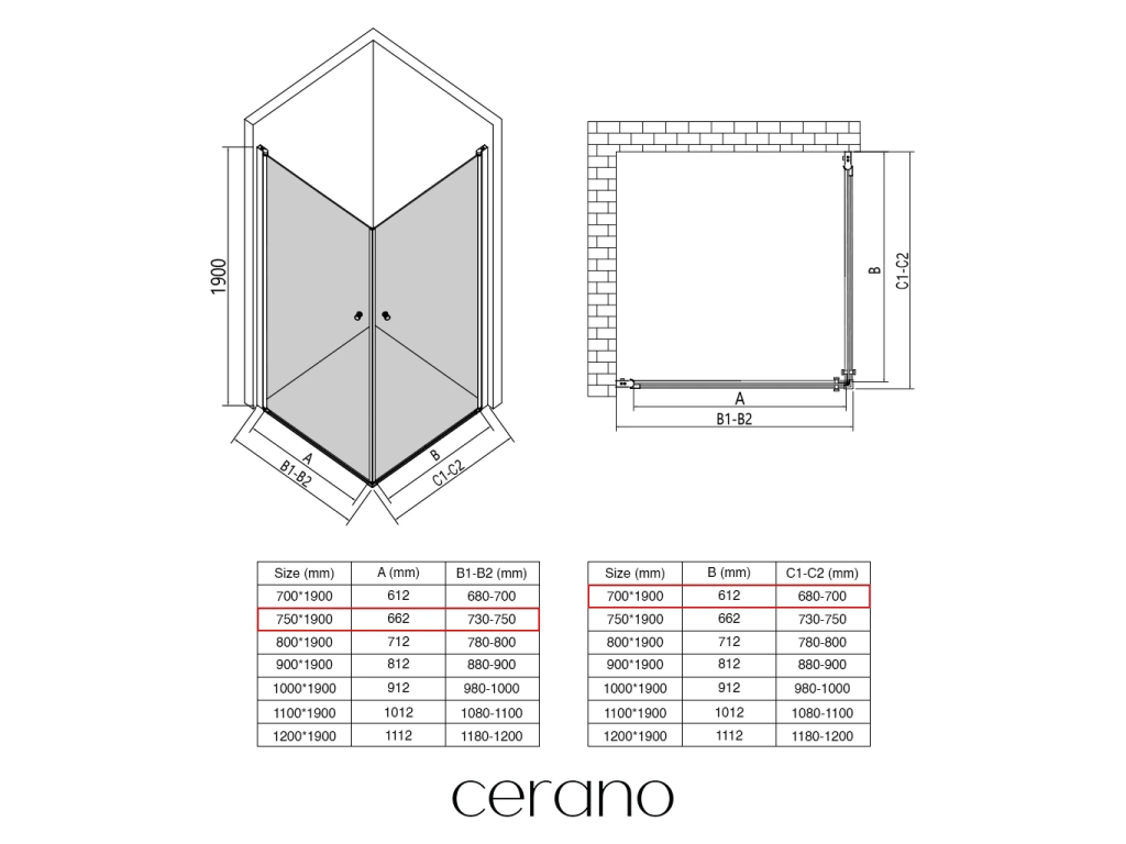 V rámci této série nabízíme širokou škálu rozměrů, abychom uspokojili různé potřeby našich zákazníků. Všechny sprchové kouty, dveře a zástěny značky CERANO jsou plně kompatibilní se sprchovými vaničkami CERANO ve stejných rozměrech, což zajišťuje bezproblémovou instalaci a dokonalé sladění.