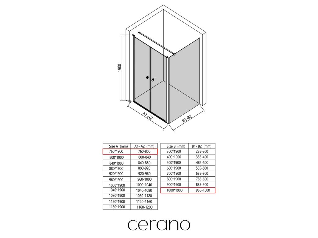 V rámci této série nabízíme širokou škálu rozměrů, abychom uspokojili různé potřeby našich zákazníků. Všechny sprchové kouty, dveře a zástěny značky CERANO jsou plně kompatibilní se sprchovými vaničkami CERANO ve stejných rozměrech, což zajišťuje bezproblémovou instalaci a dokonalé sladění.