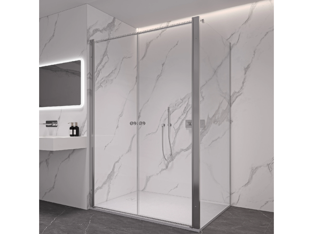 Dveře využívají křídlový systém otevírání, který je ideální pro moderní koupelny s dostatkem prostoru pro otevření dveřního křídla. Dveře jsou zavěšeny na zapuštěných pantech se systémem pneumatického přizvednutí.