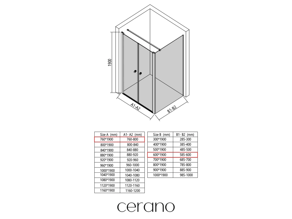 V rámci této série nabízíme širokou škálu rozměrů, abychom uspokojili různé potřeby našich zákazníků. Všechny sprchové kouty, dveře a zástěny značky CERANO jsou plně kompatibilní se sprchovými vaničkami CERANO ve stejných rozměrech, což zajišťuje bezproblémovou instalaci a dokonalé sladění.