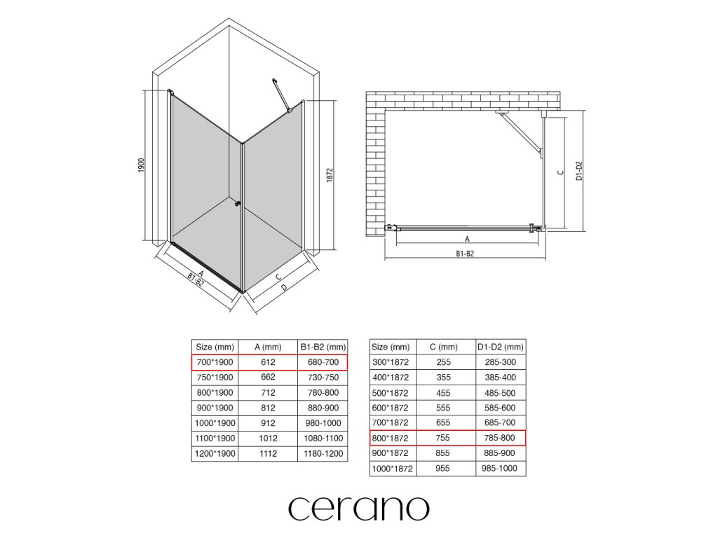 V rámci této série nabízíme širokou škálu rozměrů, abychom uspokojili různé potřeby našich zákazníků. Všechny sprchové kouty, dveře a zástěny značky CERANO jsou plně kompatibilní se sprchovými vaničkami CERANO ve stejných rozměrech, což zajišťuje bezproblémovou instalaci a dokonalé sladění.