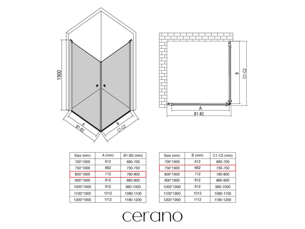 V rámci této série nabízíme širokou škálu rozměrů, abychom uspokojili různé potřeby našich zákazníků. Všechny sprchové kouty, dveře a zástěny značky CERANO jsou plně kompatibilní se sprchovými vaničkami CERANO ve stejných rozměrech, což zajišťuje bezproblémovou instalaci a dokonalé sladění.