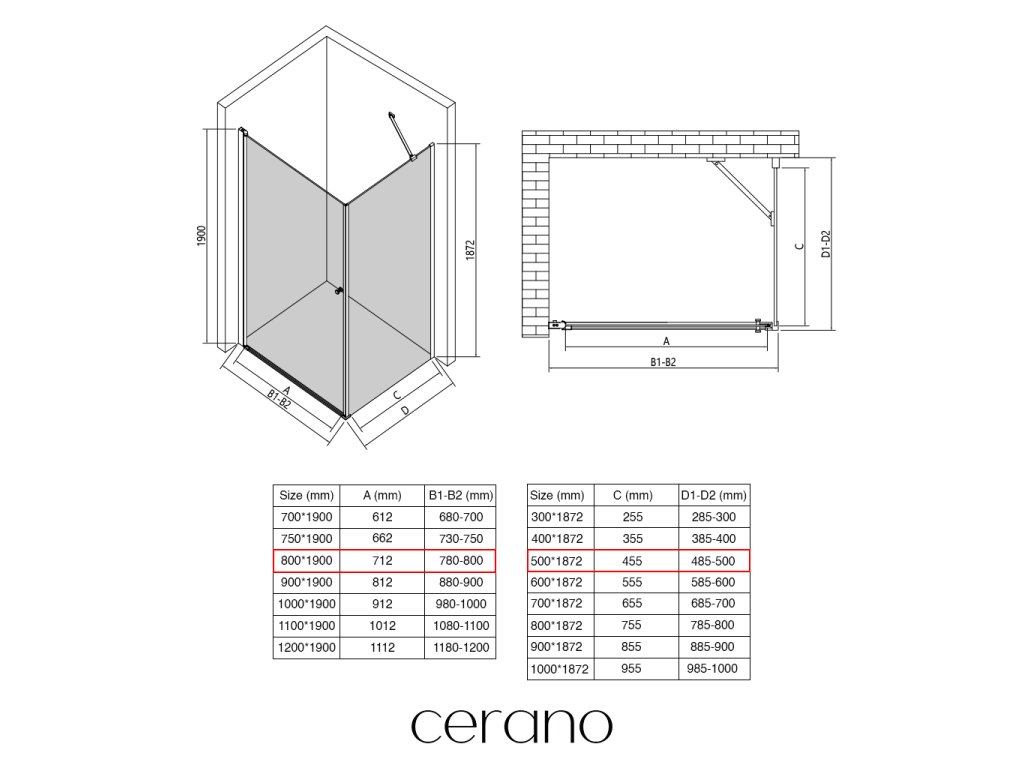 V rámci této série nabízíme širokou škálu rozměrů, abychom uspokojili různé potřeby našich zákazníků. Všechny sprchové kouty, dveře a zástěny značky CERANO jsou plně kompatibilní se sprchovými vaničkami CERANO ve stejných rozměrech, což zajišťuje bezproblémovou instalaci a dokonalé sladění.