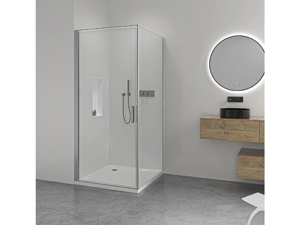 Dveře využívají křídlový systém otevírání, který je ideální pro moderní koupelny s dostatkem prostoru pro otevření dveřního křídla. Dveře jsou zavěšeny na zapuštěných pantech se systémem pneumatického přizvednutí.