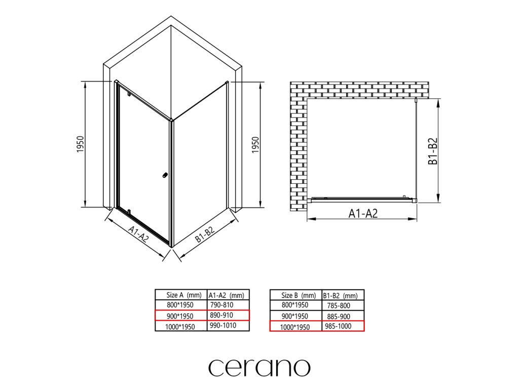 V rámci této série nabízíme širokou škálu rozměrů, abychom uspokojili různé potřeby našich zákazníků. Všechny sprchové kouty, dveře a zástěny značky CERANO jsou plně kompatibilní se sprchovými vaničkami CERANO ve stejných rozměrech, což zajišťuje bezproblémovou instalaci a dokonalé sladění. Sprchový kout lze navíc instalovat flexibilně – buď na odpovídající sprchovou vaničku, nebo přímo na podlahu podle vašich preferencí a možností koupelny.