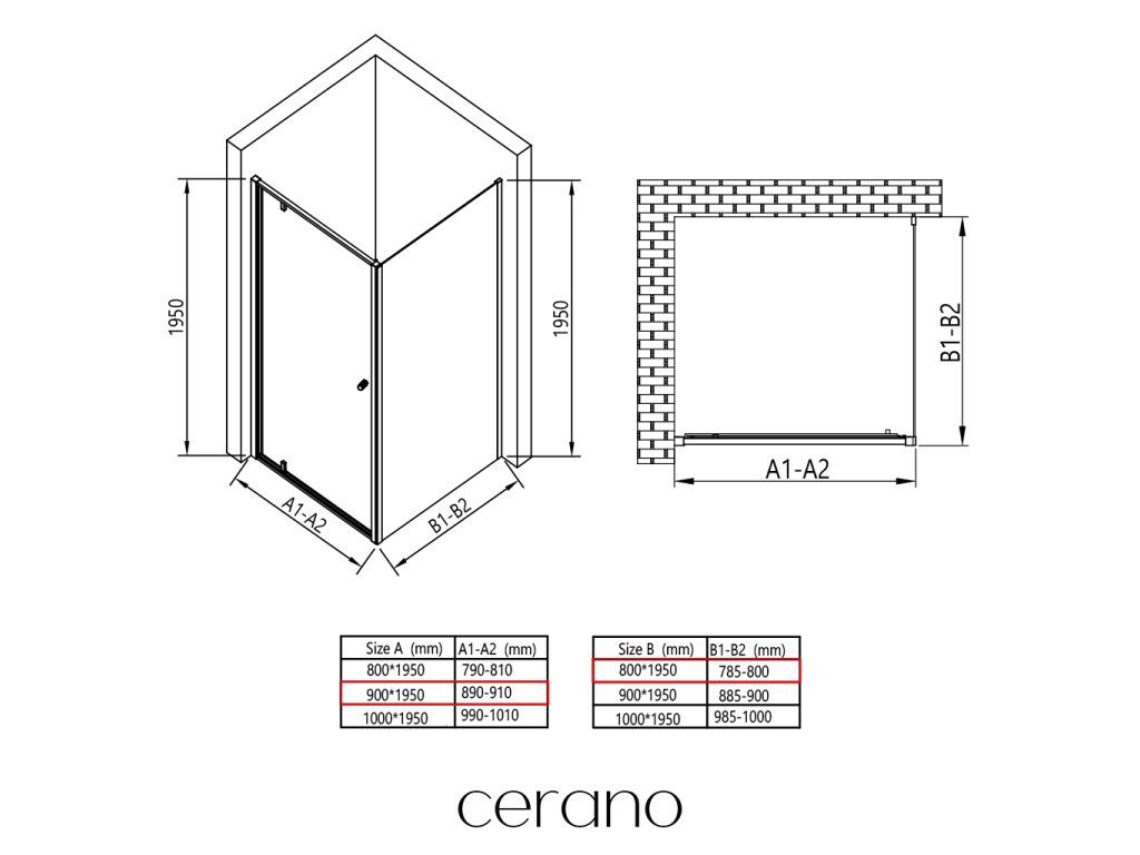 V rámci této série nabízíme širokou škálu rozměrů, abychom uspokojili různé potřeby našich zákazníků. Všechny sprchové kouty, dveře a zástěny značky CERANO jsou plně kompatibilní se sprchovými vaničkami CERANO ve stejných rozměrech, což zajišťuje bezproblémovou instalaci a dokonalé sladění. Sprchový kout lze navíc instalovat flexibilně – buď na odpovídající sprchovou vaničku, nebo přímo na podlahu podle vašich preferencí a možností koupelny.