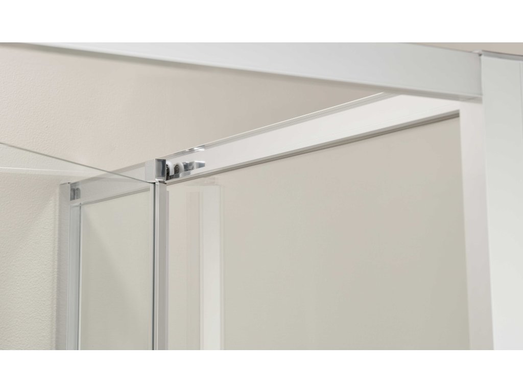 Zasouvací dveře se inovativním způsobem zasouvají dovnitř sprchového koutu, čímž vzniká velký vstupní prostor. Díky tomu dveře nezasahují do prostoru koupelny. Jde o velmi vhodné řešení i pro malé koupelny.