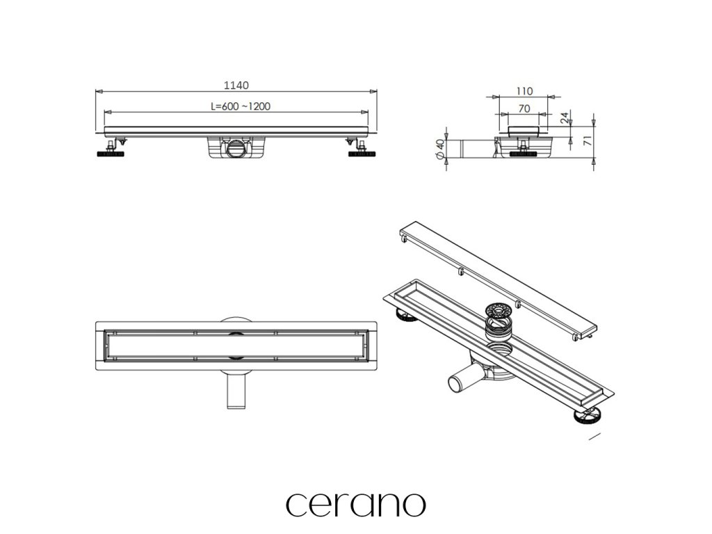 CERANO - Sprchový odtokový žlab se sifonem, otočný 360° - design 2v1 - nerez - 114 cm