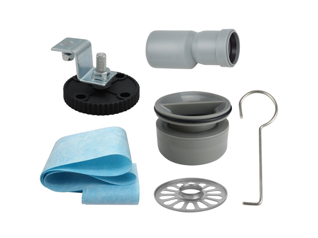 Odtok je vybaven nastavitelnými nožičkami, které umožňují přesné nastavení výšky a zajištění rovného umístění i na nesrovnaných podlahách. Tato flexibilita zajišťuje, že odtok bude dokonale pasovat do specifických podmínek vaší koupelny.