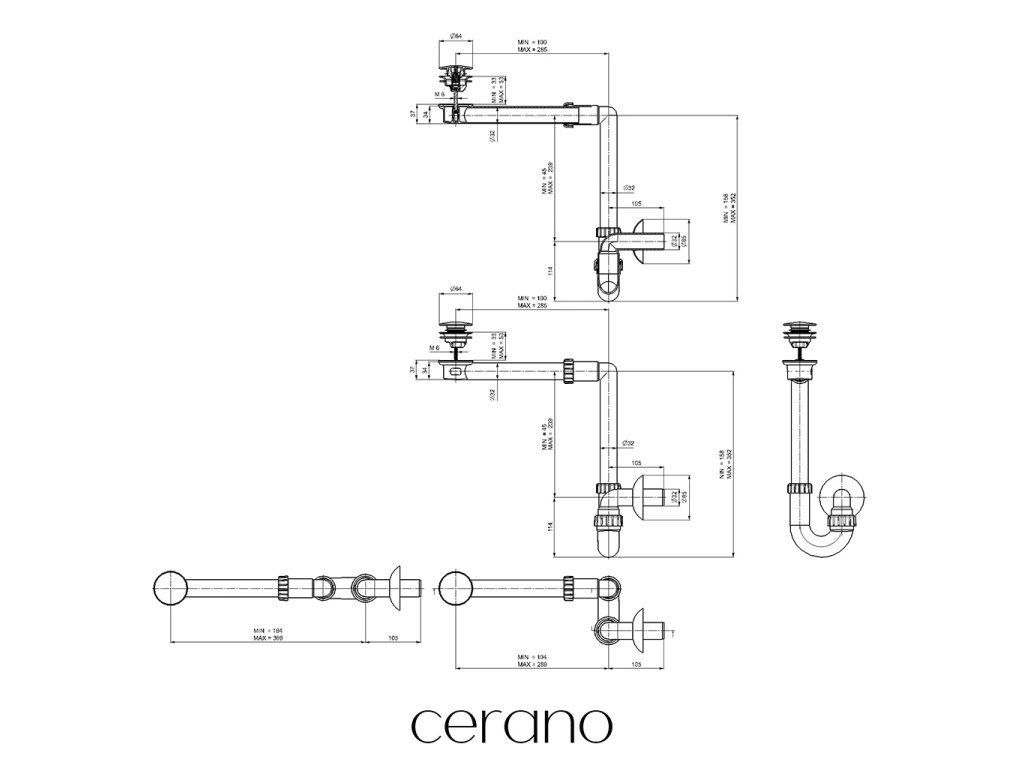 CERANO - Sifon Umyvadlový/nábytkový, místošetřící /extra nízký - plast - výpusť click-clack univerzální nerez - DN32/250-700 mm - bílá