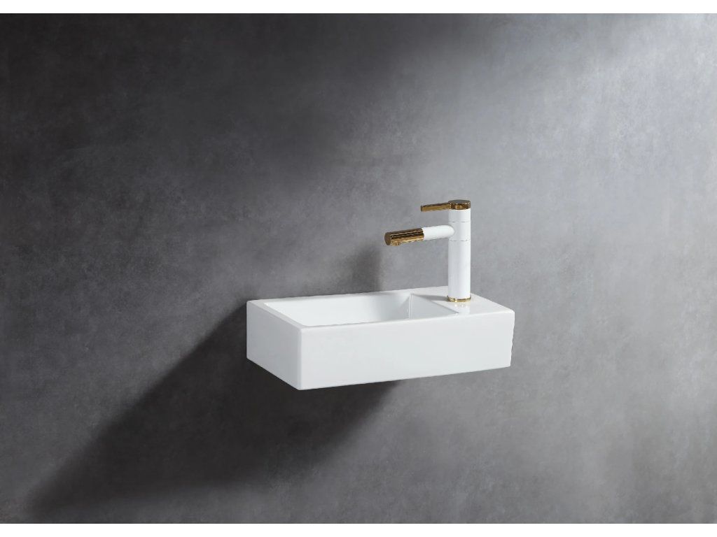 CERANO - Keramické umývátko Roberto, závěsné pravé - bílá lesklá - 37,7x18,5 cm