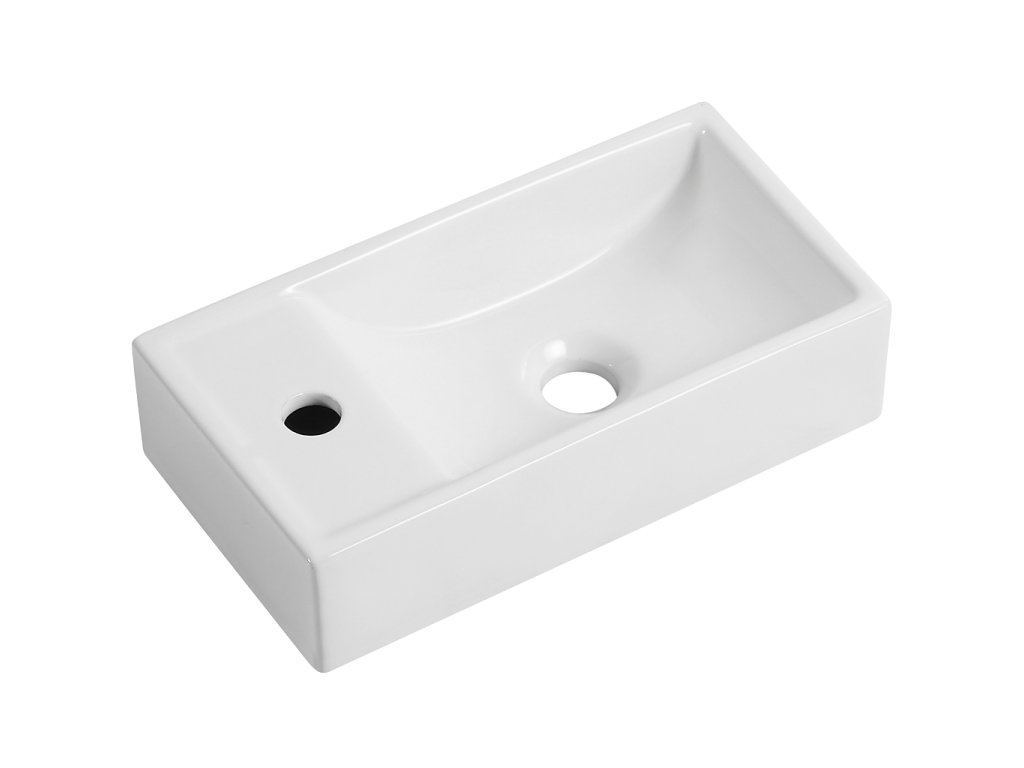 CERANO - Umyvátko keramické Giovanni, závěsné levé - bílá lesklá - 41x22,5 cm