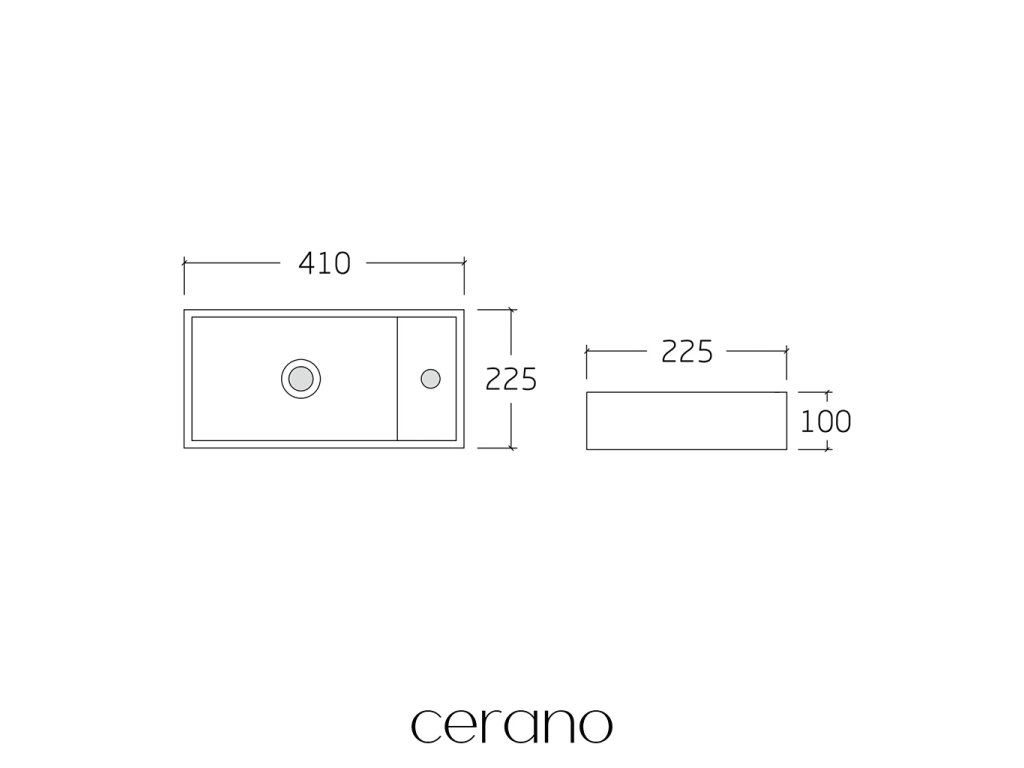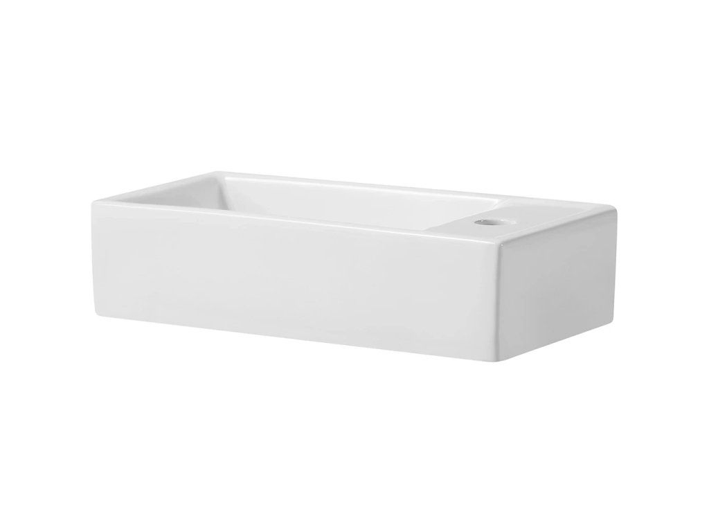 CERANO - Umyvátko keramické Giovanni, závěsné pravé - bílá lesklá - 41x22,5 cm