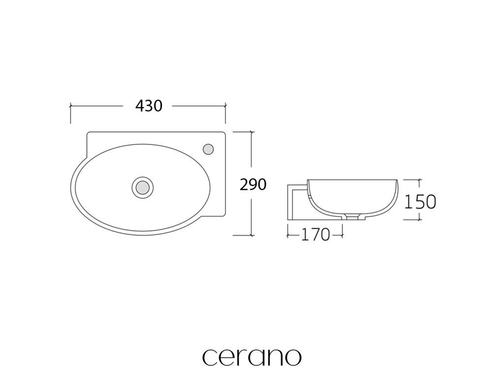 CERANO - Umývátko keramické - nástěnné - Avorio - pravá - bílá lesklá - 43x29 cm