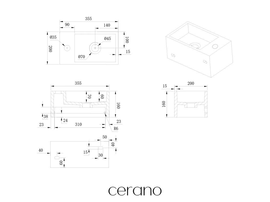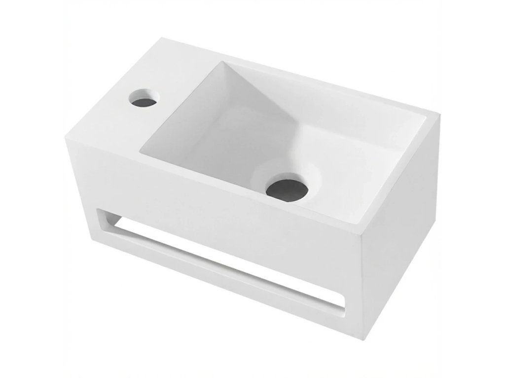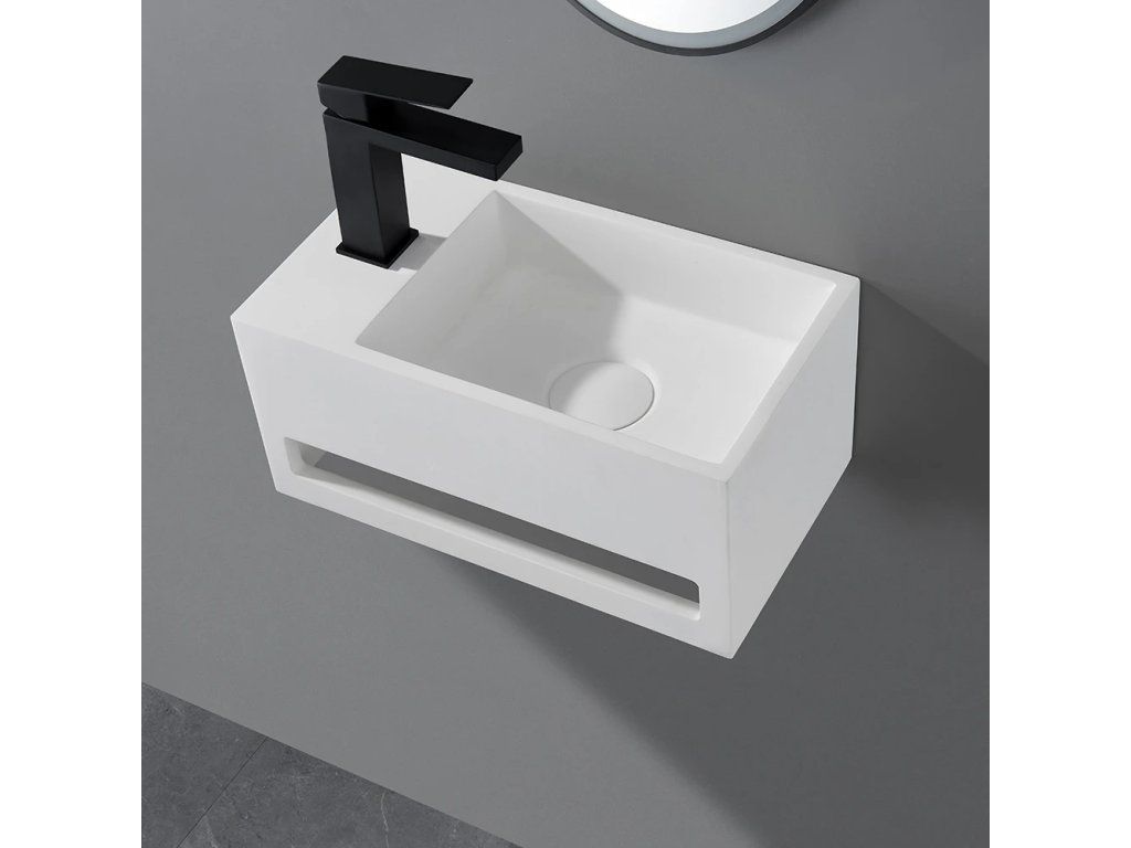 CERANO - Umývátko z litého mramoru Filo, závěsné levé - bílá matná - 35,5x20 cm