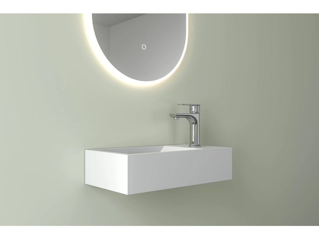 CERANO - Umývátko z litého mramoru Teo - závěsné pravé - bílá matná - 40x22 cm