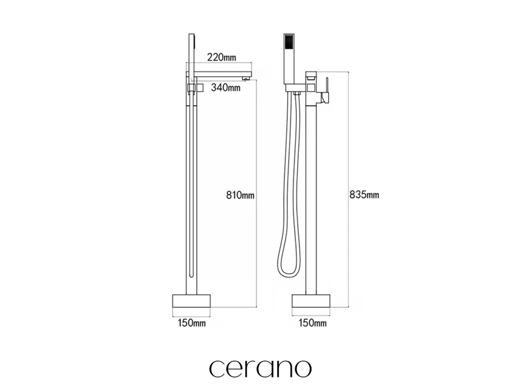 CERANO - Vanová baterie volně stojící Celeste - černá matná