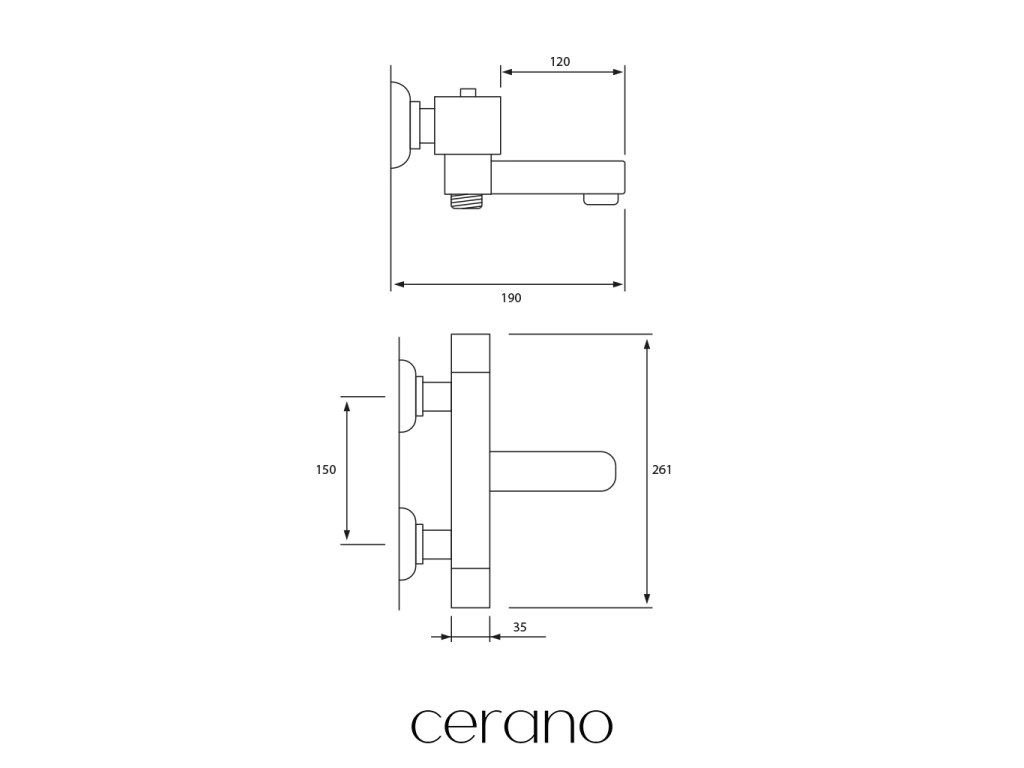 CERANO - Vanová nástěnná baterie Lorena - termostatická - otočný výtok - chrom