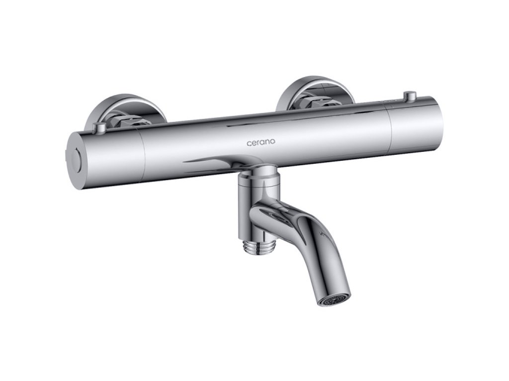CERANO - Vanová nástěnná baterie Selma - termostatická - otočný výtok - chrom