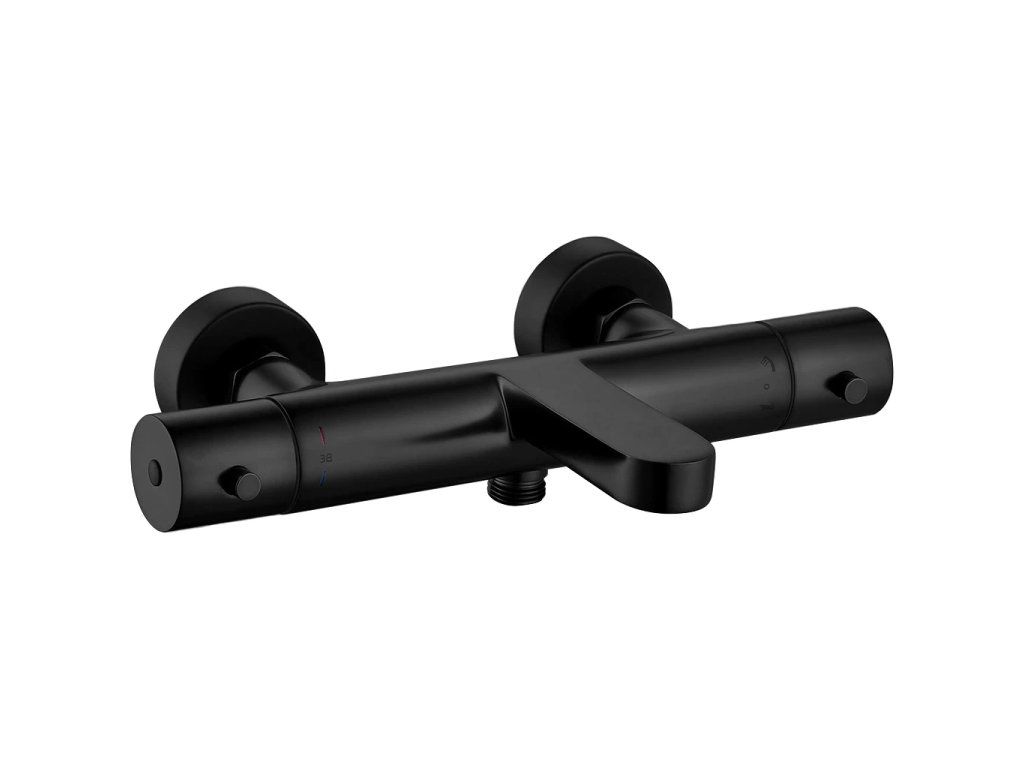 CERANO - Vanová nástěnná baterie - termostatická - Tondo - černá matná