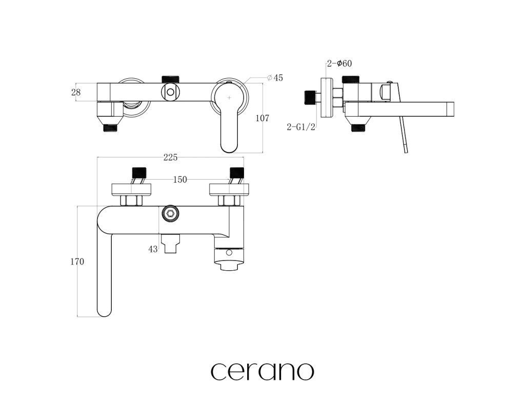 CERANO - Vanová nástěnná baterie Velea - černá matná
