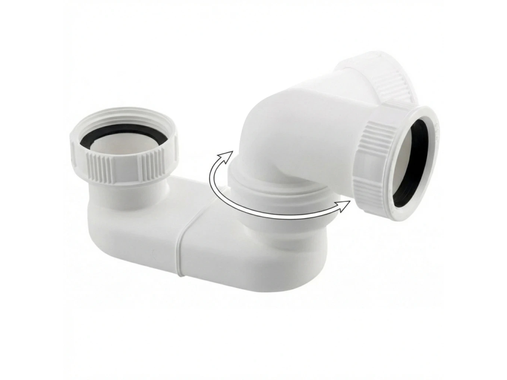 Sifon je vybaven otočným kloubem vyrobeným technologií přesného zalisování. Spoj neobsahuje gumové těsnění – vodotěsnost je zajištěna samotnou konstrukcí spoje bez použití gumových prvků.