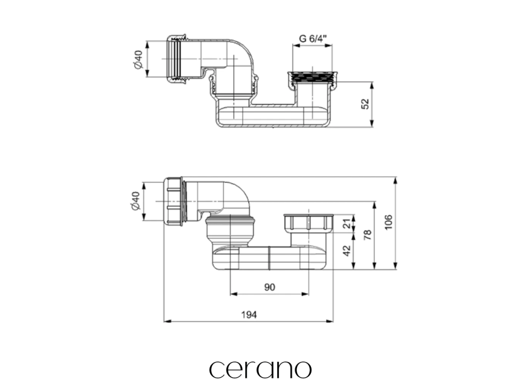 CERANO - Sifon otočný vanový - 6/4" - plast - DN40 - bílá