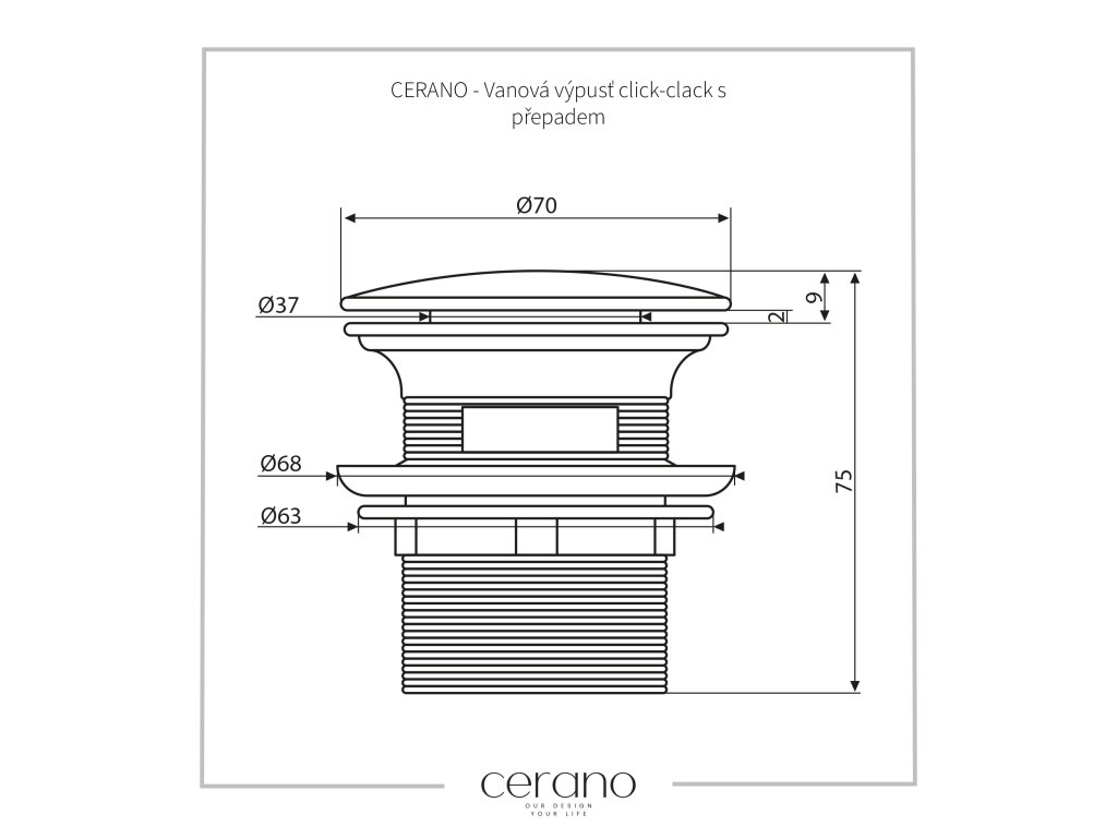 Kruhová vanová výpusť click-clack značky Cerano je velmi praktický koupelnový doplněk, který slouží k odtoku vody z van.