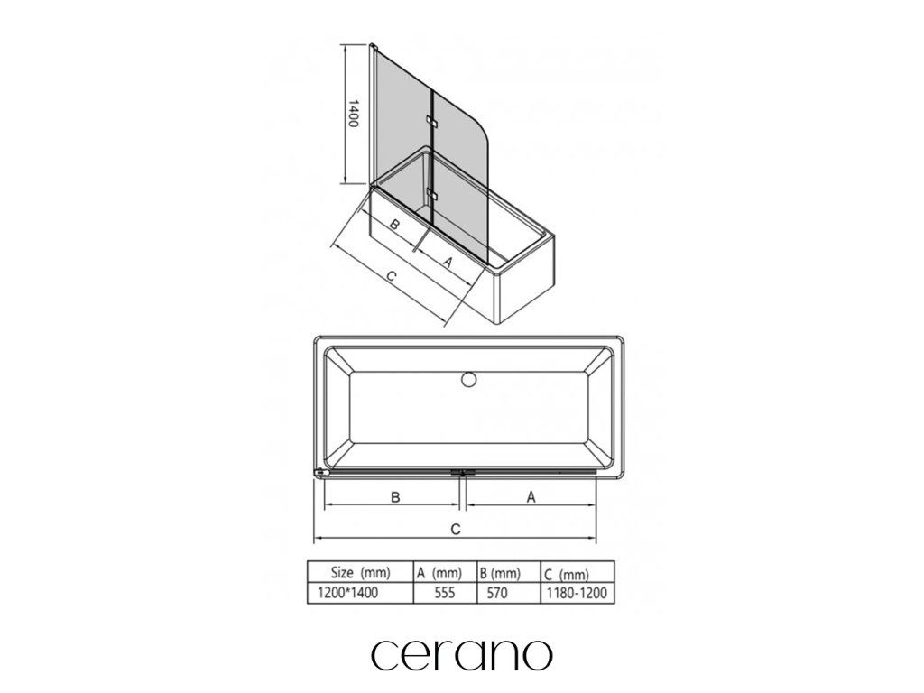 CERANO - Vanová zástěna dvoudílná Vasca - chrom, transparentní sklo - 120x140 cm - otočná/zalamovací