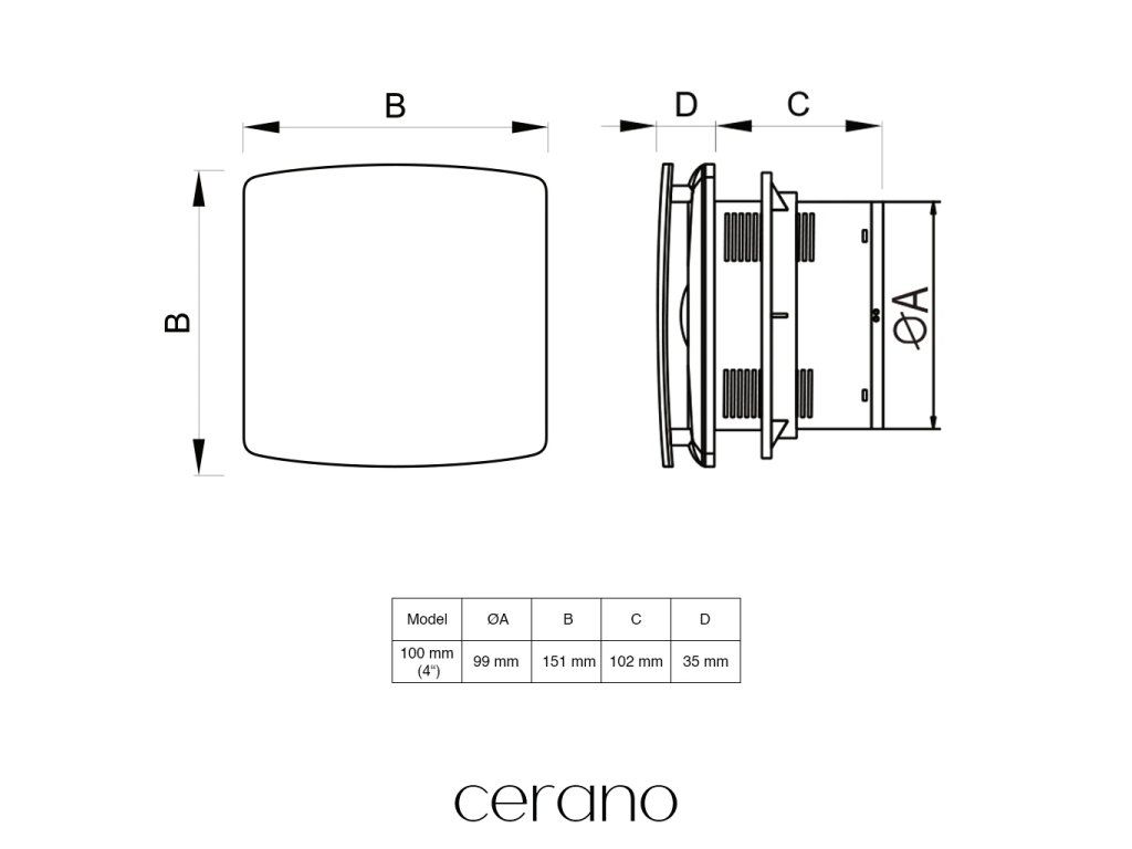 CERANO - Koupelnový axiální ventilátor, 12W, potrubí 100mm - bílá lesklá