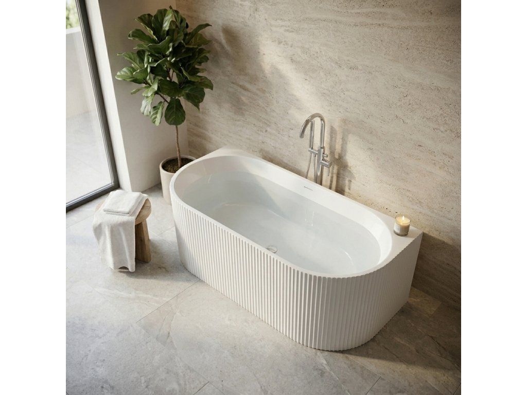 CERANO - Volně stojící akrylátová vana Aira, nástěnná - bílá lesklá - 150x75 cm