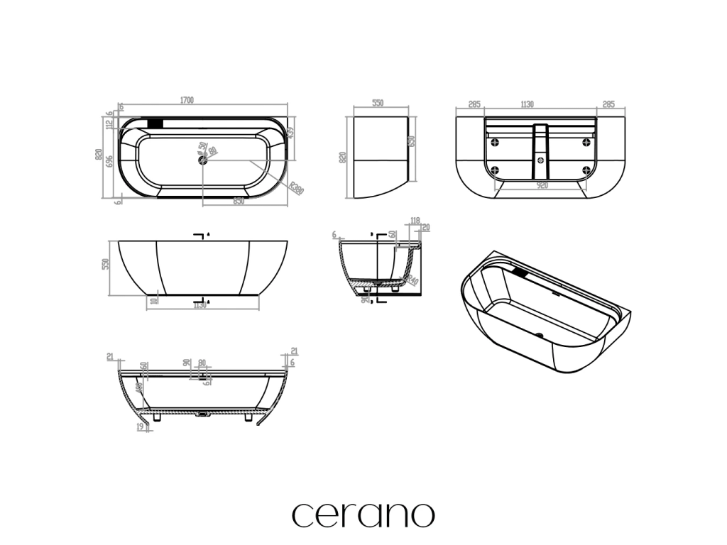CERANO - Volně stojící vana z litého mramoru Valeria, nástěnná - bílá matná - 170x82 cm