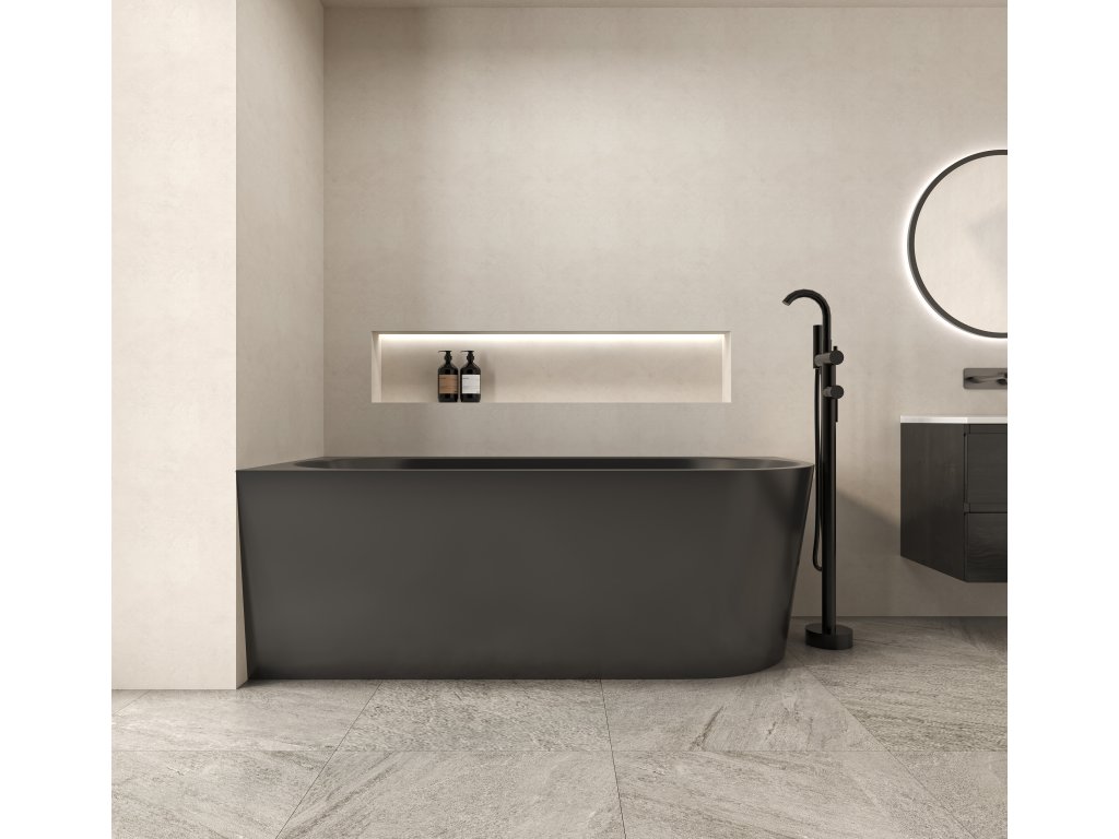CERANO - Volně stojící akrylátová vana Bianco, levá - černá matná - 170x80 cm