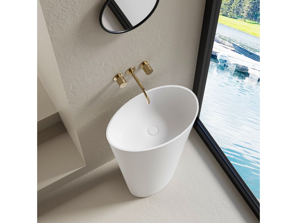 CERANO - Umyvadlo z litého mramoru Valeo - volně stojící - bílá matná - 60x90 cm