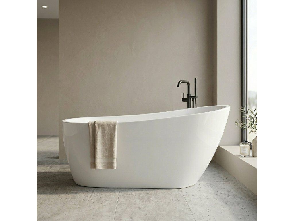 CERANO - Volně stojící akrylátová vana Camelia - bílá lesklá - 149x69 cm