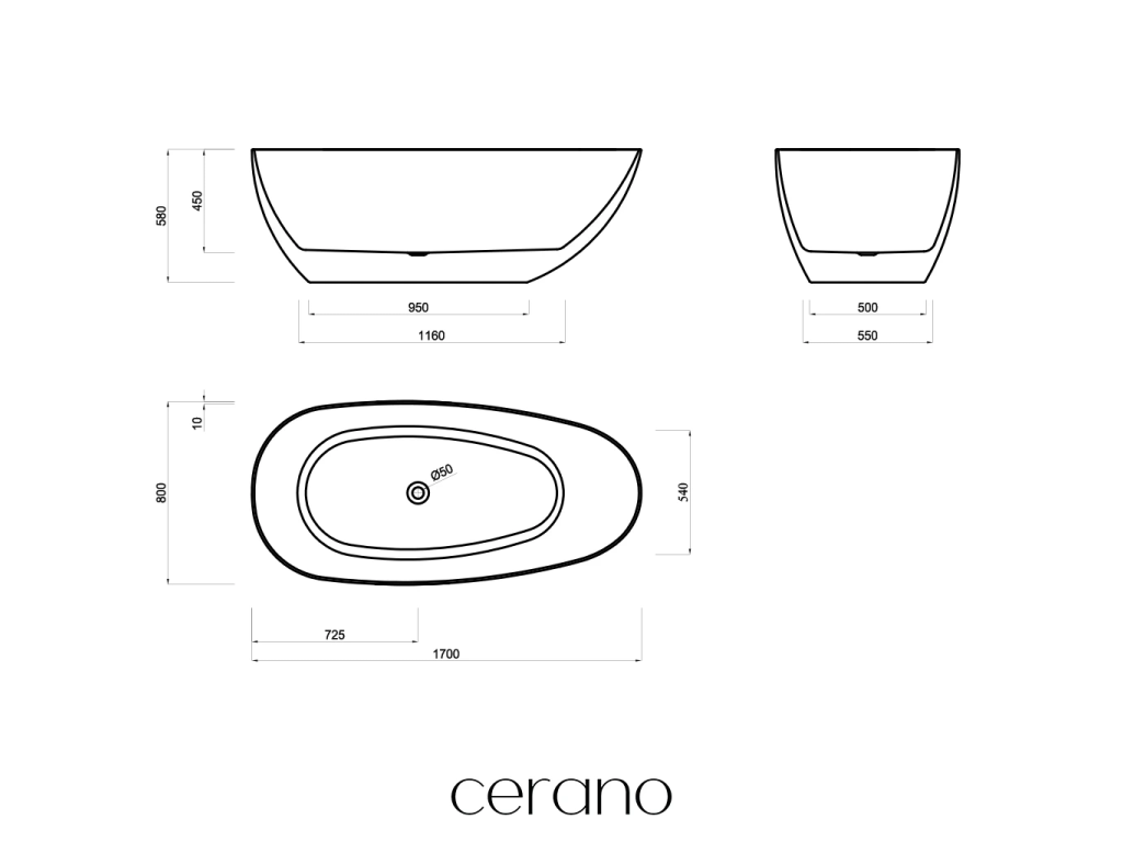 CERANO - Volně stojící akrylátová vana Unica - bílá matná - 170x80 cm