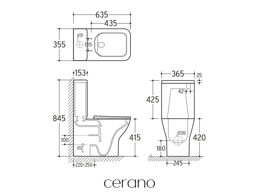 CERANO - WC kombi Hugo, Rimless + Slim/UF sedátko - spodní/zadní odpad - bílá lesklá - 63,5x35,5 cm